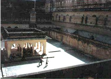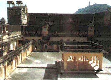 Der Frauentrakt des berühmten prunkvollen Amber-Palast bei Jaipur in Rajasthan ähnelt auf alle Fälle mehr einem Gefängnis oder einem riesigen Schweinepferch mit durch hohe Mauern abgeteilten Bezirken (oder besser “Gattern”), in denen die Frauen mit ihren Kindern lebten. Und rechts oben hinter der Mauer ist ein Gang mit kleinen Fensterchen, von dort konnte der hohe Herr von unten unbemerkbar auf den Hof und in die "Gatter" hinunterspinxen und sich aussuchen, auf wen er gerade Appetit für seine Spielchen hatte.